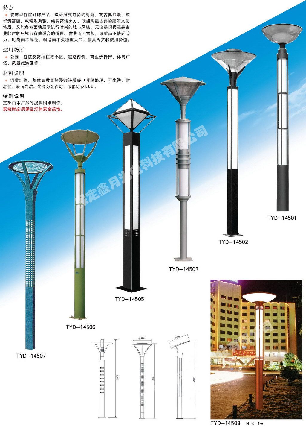 鑫月光電庭院燈圖集,為您介紹我公司庭院燈產品畫冊